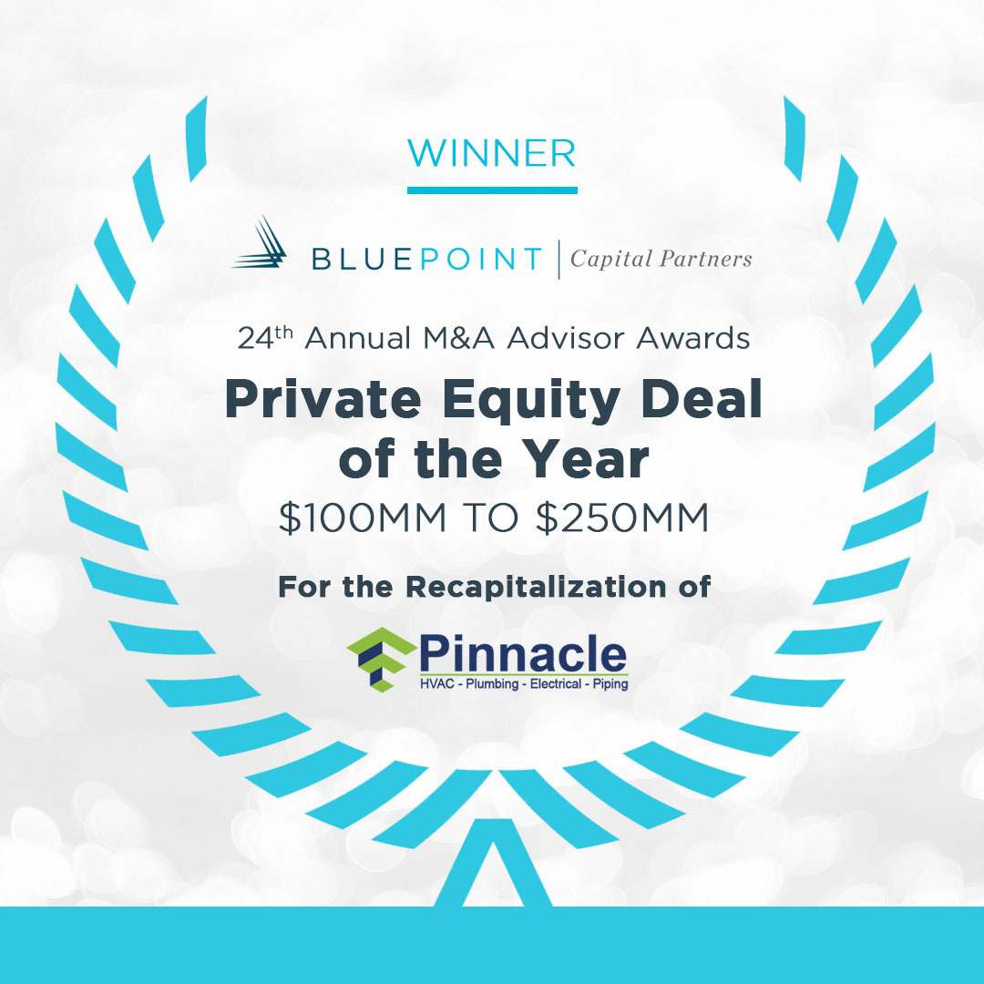 We’re thrilled to share that The M&A Advisor recognized Blue Point’s recapitalization of Pinnacle MEP Holdings as the Private Equity Deal of the Year (deal size: $100MM to $250MM) at the 2025 Future of Dealmaking Summit.