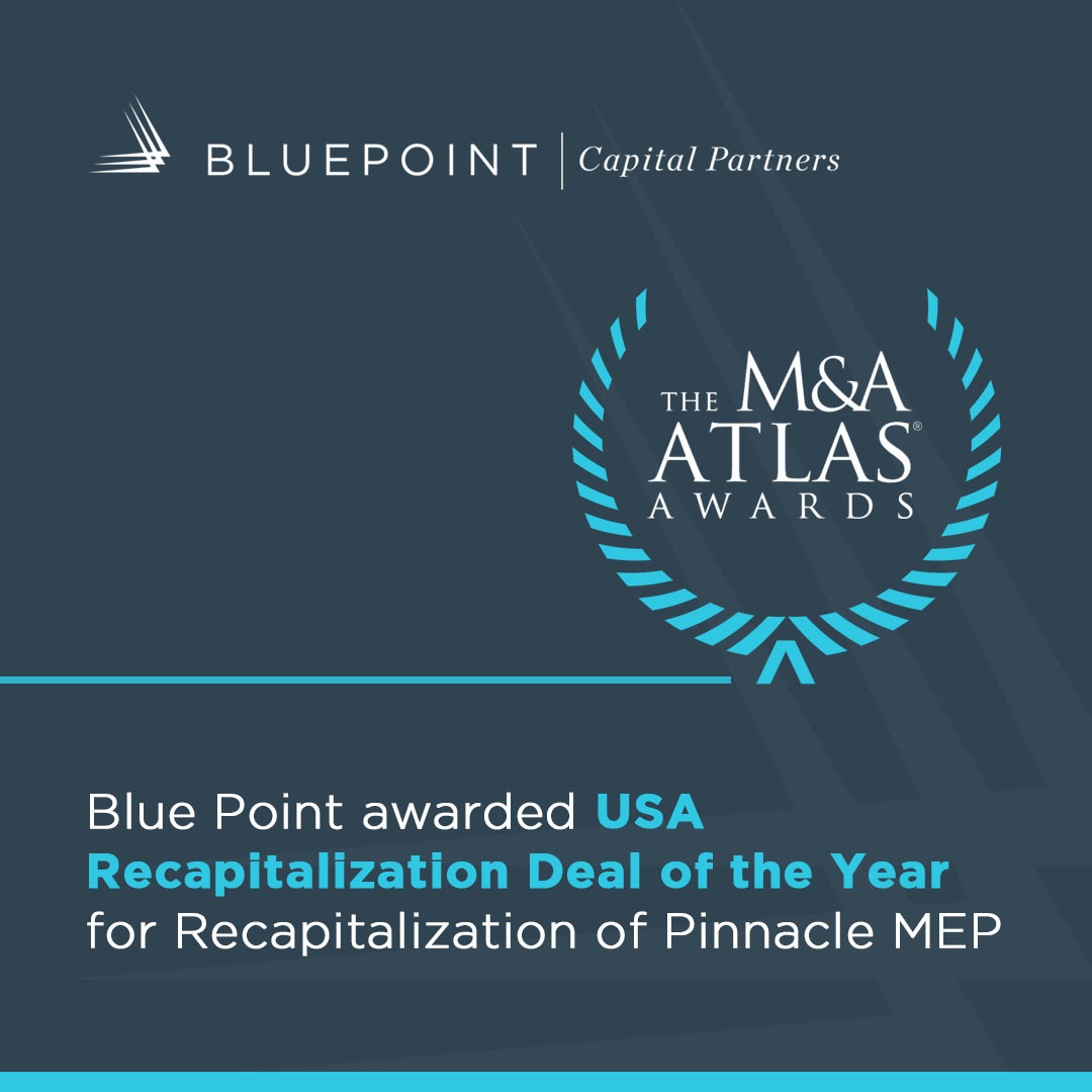 We’re excited to announce that Blue Point has won Recapitalization Deal of the Year at Global M&A Network, LLC’s USA M&A Middle Market Atlas Awards for our recapitalization of Pinnacle MEP. The award was presented at the 7th Annual Gala Celebration in New York earlier this week.